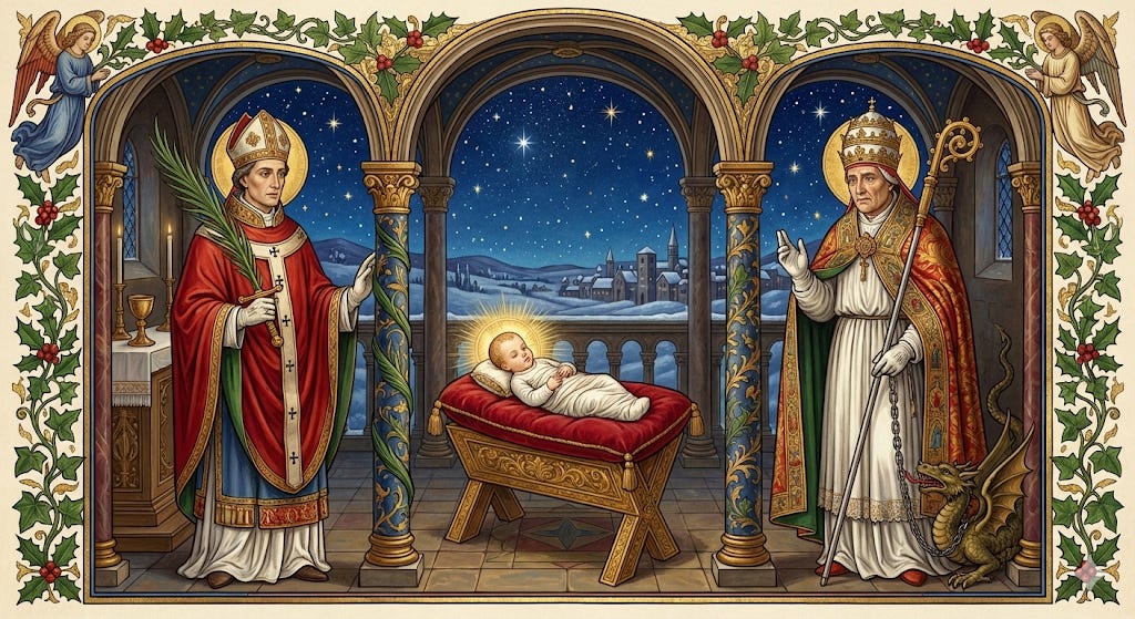 3. Vespers – Psalms and their antiphons from II Vespers of Christmas. Everything from chapter reading on is the Office of Sunday in the Octave of the Nativity, or from the 31 December Feast of Saint Sylvester, or from the infra Octavam Office outlined below, depending on the date of Saint Thomas Beckett’s celebration or if we are in a year where the infra Octavam is used.